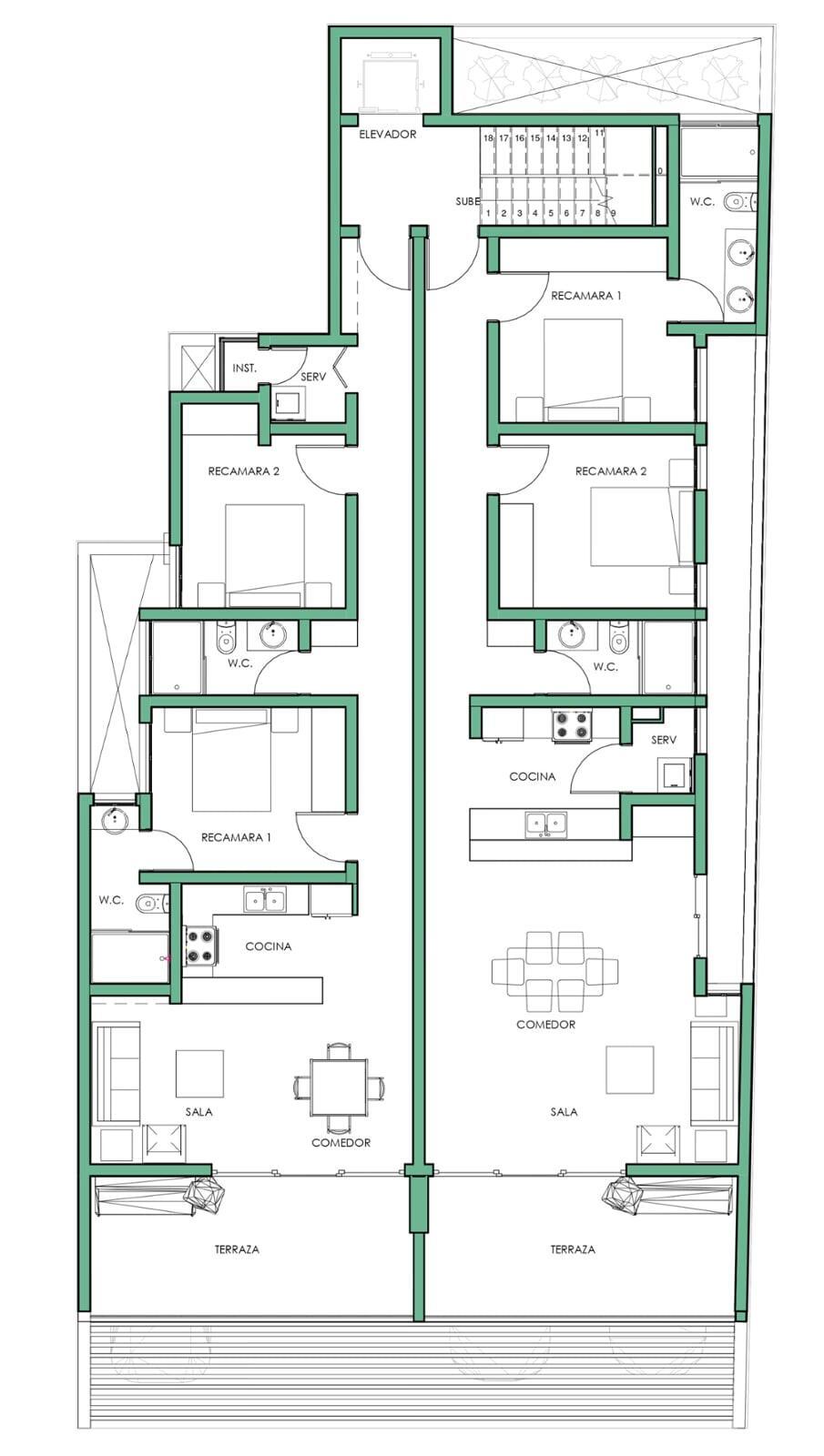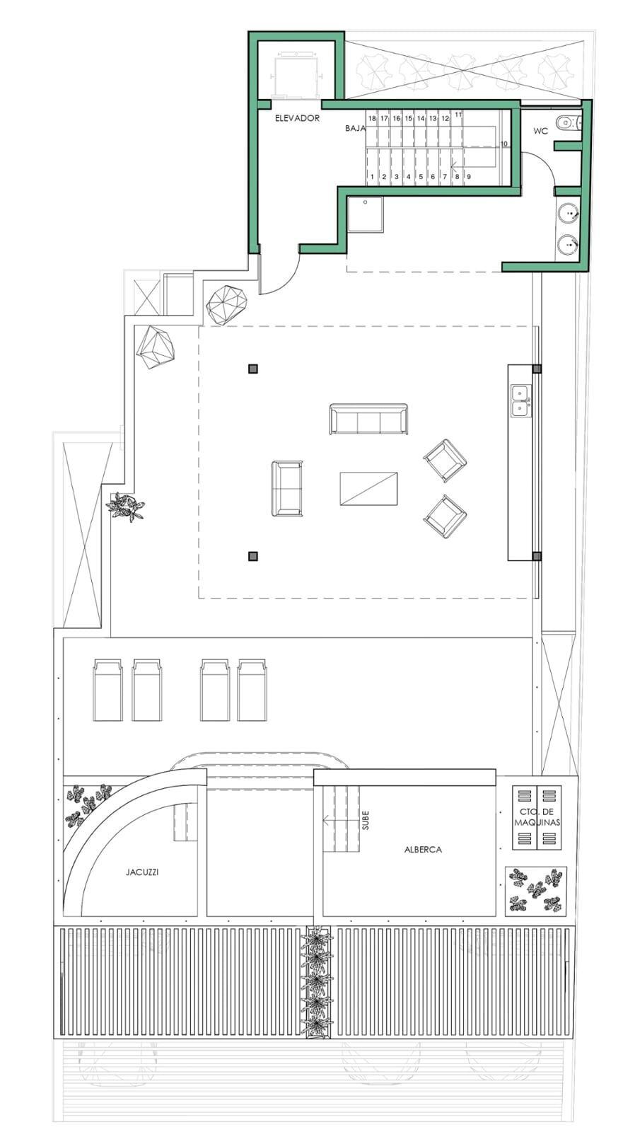 Se elaboró proyecto ejecutivo (Diseño arquitectónico, estructural, hidráulico, sanitario, eléctrico, gas, aire acondicionado, pluvial, trazo, carpintería, cancelería y acabados). Proyecto elaborado en Software BIM.