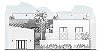Proyecto habitacional de departamentos en espejo que constan de 2 recamaras, 2 baños completos, área para bbq-Bar, alberca y patio compartido. Diseño tradicional, espacios funcionales