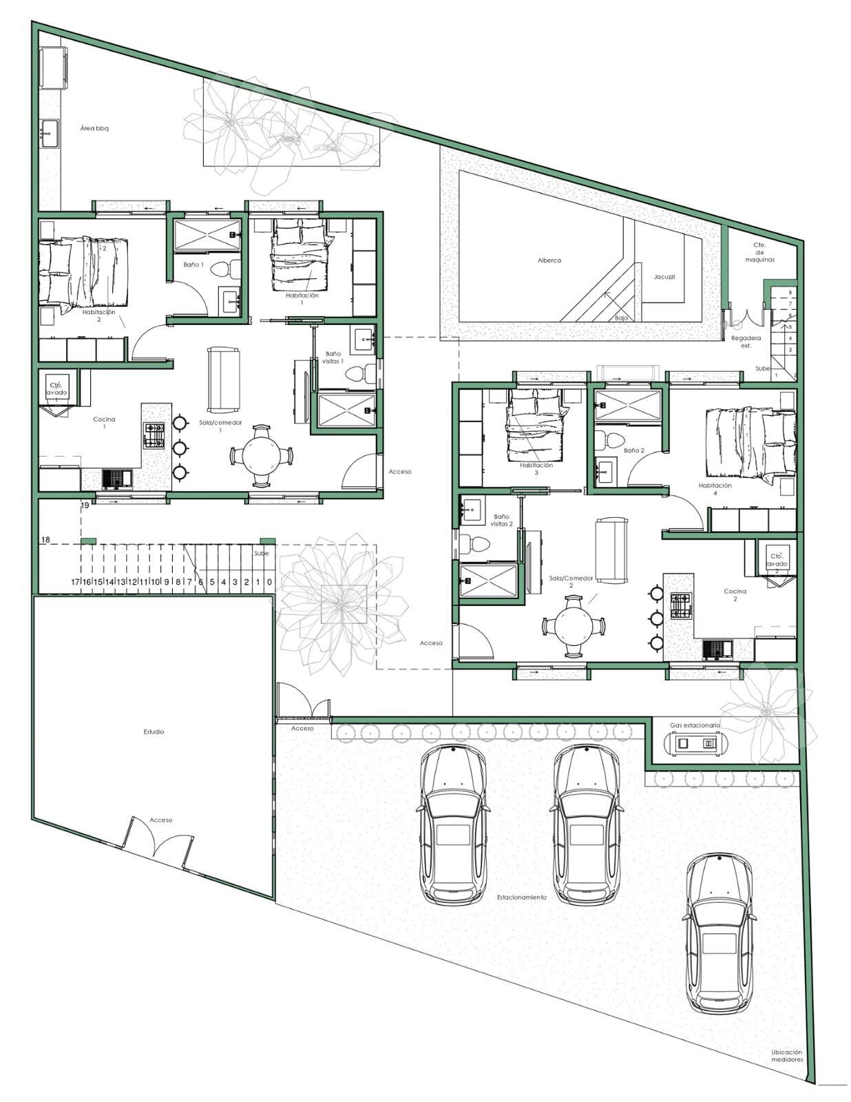 Se elaboró proyecto ejecutivo (Diseño arquitectónico, estructural, hidráulico, sanitario, eléctrico, gas, aire acondicionado, pluvial, trazo, carpintería, cancelería y acabados). Proyecto elaborado en Software BIM.